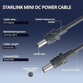 O Cabo DC para Starlink Mini (5.5x2.1mm) 100W – 2 metros foi desenvolvido para garantir uma conexão eficiente e segura entre sua fonte de alimentação e o Starlink Mini. Com 2 metros de comprimento, proporciona maior flexibilidade na instalação, permitindo posicionar a antena no melhor local sem limitações de distância.