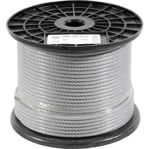 Aplicação: Indicado para cargas estáticas e operações sujeitas a atrito. Exemplos: ornamentação, prateleiras, varal, estais e tirantes. ATENÇÃO: para segurança e garantia do produto, mantenha sempre o selo de conformidade do Inmetro junto a bobina do cabo de aço.