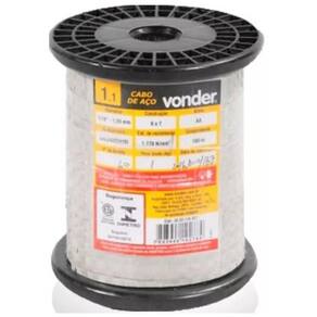 O Cabo de Aço Vonder é indicado para instalação de cerca elétrica, manutenção de vidro elétrico de veículos, entre outras funcionalidades. Indicado para cargas estáticas e operações sujeitas a atrito. ATENÇÃO: para segurança e do produto, mantenha sempre a etiqueta com o selo de conformidade do Inmetro junto à bobina do cabo de aço. Possui ótima resistência à abrasão, pouca flexibilidade e maior resistência à corrosão e oxidação. Características do cabo: Diâmetro do cabo de aço: 1/16 - 1,59 mm Tipo de alma do cabo de aço: AA - Alma de Fibra Construção do cabo de aço: 6 x 7 Comprimento da bobina do cabo de aço: 100 m Tipo de torção do cabo de aço: TRD - torção regular a direita Qualidade da camada de zinco do cabo de aço: B Norma do cabo de aço: ABNT NBR ISO 2408 Construção da perna do cabo de aço: 1-6 Categoria de resistência do cabo de aço: 1770 N/mm² Carga de ruptura mínima do cabo de aço: 1,61 kN Carga de ruptura mínima do cabo de aço: 164 kgf Lubrificação no cabo de aço: Não Marca: Não Informado