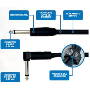 O cabo ideal para uso com instrumentos musicais, proporcionando alta fidelidade e menor Risco de interferências. Ideal para guitarra, baixo, violão, obtenha o máximo do seu Instrumento musical, sem chiados ou ruídos indesejados com cabos em 100% cobre OFHC, Livres de oxigênio, revestidos em PVC de alta qualidade e blindados com termoretrátil.