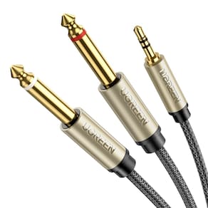 O cabo divisor UGREEN banhado a ouro 3,5 mm TRS para 6,35 mm TS mono Y é perfeito para conectar seu laptop ou PC com uma saída de alto-falante a um dispositivo com 2 entradas de conector de 6,35 mm - por exemplo, mesa de mistura. É feito de condutores de cobre para maior clareza de sinal e ideal para apresentações em estúdio ou ao vivo.