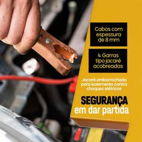 Cabo auxiliar de partida 800amp / chupeta para bateria de carro, moto, caminhão É normal esquecermos as luzes, rádio e lanternas de nosso veículo ligados. Isso acaba descarregando a bateria e nos deixando em uma situação complicada. Esse cabo é utilizado para transferência de carga. É um acessório indispensável para o seu veículo em situações de emergência. Nosso cabo de chupeta transmitido 800amp é a solução ideal para quem precisa fazer uma partida rápida e segura em carros e caminhões. Com um custo acessível, você pode ter em mãos um produto de alta qualidade, produzido com materiais resistentes e duráveis. Com capacidade de transmissão de 800amp, este cabo de chupeta garante que você não fique na mão em momentos de emergência, evitando atrasos e transtornos necessários. Além disso, seu comprimento de 2 metros permite maior flexibilidade na hora de fazer a conexão entre os veículos. Características: Cabo de alta resistência e durabilidade. 4 garras tipo jacaré acobreadas. Prático e indispensável. Possui bolsa para guardar os cabos, deixando-os organizados. Conteúdo: 2 cabos amarelos de 2 metros. Cabo vermelho = positivo Cabo preto = negativo Dúvidas frequentes: 1 - os produtos são novos R: todos os produtos são novos e com . 4 - como são realizadas as entregas R: sim, nos anúncios que exibirem essa opção. Marca: Não Informado