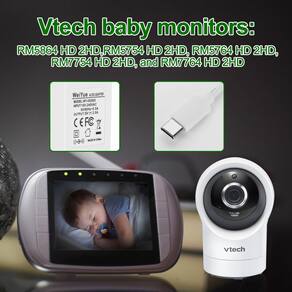 - O cabo do carregador de bebê Cvtech é compatível com vários monitores de bebês VTech HD 2HD, incluindo os modelos RM5754, RM5764, RM5864, RM7754 e RM7764. Também é adequado para uso com o monitor de bebê de vídeo HD 5 e 7 Smart Wi-Fi 1080p da VTech.