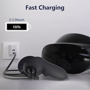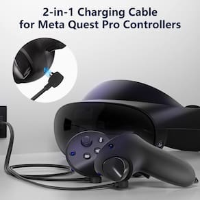 Este cabo 2 em 1 carrega seus controles Meta Quest Touch Pro com uma conexão USB-C. O design de 100 cm é perfeito para transporte ou armazenamento. - Conveniência: o cabo de carregamento 2 em 1 permite que os usuários carreguem os dois controles simultaneamente, economizando tempo e esforço. O comprimento de 100 cm é adequado para uso e fácil de transportar. Além disso, o design compacto cabe facilmente em uma bolsa, tornando-a ideal para viagens. - Otimização de espaço: Cabo de carregamento 2 em 1 de design exclusivo para controladores Meta Quest Pro, conector TYPE-C é compatível com adaptador de escritório. O cabo de carregamento 2 em 1 reduz a necessidade de cabos separados, ajudando a manter a área de carregamento limpa e organizada. - Compatibilidade: projetado especificamente para controles Meta Quest Pro, este cabo de carregamento 2 em 1 é compatível com várias capas protetoras de controle. - Materiais de alta qualidade: Feito com materiais premium e processos de fabricação, o cabo de carregamento é durável e confiável, o que os usuários podem considerar ao procurar alternativas. - Segurança: Projetado e produzido para atender aos padrões de segurança, o cabo de carregamento ajuda a evitar possíveis problemas como superaquecimento e curto-circuitos.