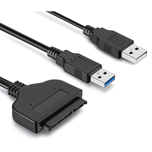 Cabo adaptador dual USB 3.0 para SATA de até 5 Gbps com suporte para cabo de alimentação USB 2.0. Permite hot-swapping, plug and play. Compatível com versões anteriores USB 1.1 e USB 2.0. Suporta HDDs e SSDs SATA de 2.5".Tipo