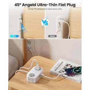- ?Plugue plano ultrafino e montagem na parede?O plugue plano ultrafino de 1 cm e o design angular de 45° se ajustam a espaços apertados. O filtro de linha de 3 metros tem orifícios de montagem (com parafusos/molde) para fácil instalação, economizando espaço e organizando sua mesa