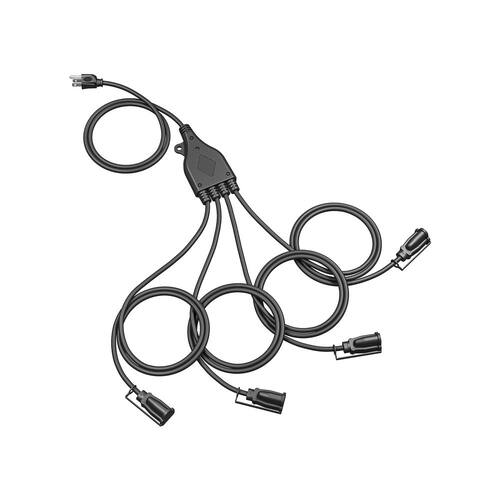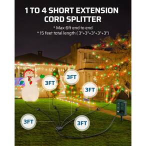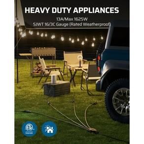 DEWENWILS Cabo de extensão externo com interruptor – Divisor de 1 a 4, 13 A 125 V 1625 W, cabo de extensão SJTW para iluminação de paisagens, luzes de Natal/férias/decorações Este cabo de extensão DEWENWILS para ambientes externos é projetado para versatilidade e conveniência. Com um interruptor embutido, permite que você controle facilmente a energia sem desconectar dispositivos. O divisor de 1 a 4 permite conectar vários dispositivos simultaneamente, com uma carga máxima de 13A, 125V e 1625W, tornando-o ideal para alimentar luzes de paisagem, decorações de Natal ou feriados e muito mais. Construído com isolamento SJTW durável, é construído para suportar várias condições climáticas, garantindo um desempenho confiável para todas as suas necessidades ao ar livre. Especificações - Tensão de entrada: 125VAC 60Hz - Classificação de potência máxima: 13A. Max 1625W - Cabo: SJTW 16/3C Lista de embalagem - 1 cabo de extensão x 1 - Manual de instruções x 1 - [Divisor de 1 a 4] Com plugue de três pinos e quatro tomadas, este cabo de extensão de 4,5 m ao ar livre é mais conveniente do que usar vários cabos separados, mantendo seu quintal arrumado e organizado; perfeito para Natal/Halloween, luzes externas, eletrodomésticos, decorações de férias e infláveis - [Total de 15 pés] Comprimento total de 4,6 m (3'+3'+3'+3'), com um cabo principal de 0,9 m do plugue ao conector e quatro divisores de 3 pés; o divisor de energia de 4 vias permite que você espalhe dispositivos conectados em diferentes direções; não há necessidade de cabos de extensão adicionais - [Cabo SJTW] Feito com uma jaqueta externa de PVC durável e um design moldado, nosso cabo de extensão tripla para uso externo oferece resistência duradoura contra desgaste, umidade e luz solar direta; permanece flexível mesmo em clima frio, evitando rachaduras e dobras - [Resistente] Classificação para CA 125V, 13A e 1625W, este cabo de extensão externo curto de 16 AWG possui fiação totalmente de cobre, lâminas reforçadas e isolamento de PVC de camada dupla, fornecendo uma solução de energia confiável e segura para vários dispositivos simultaneamente - [Capa de segurança e listado na ETL] Projetado com capas de segurança em cada tomada para proteger soquetes não utilizados de umidade, chuva, neve e poeira, o cabo de extensão externo de 4,5 m é ideal para ambientes úmidos; certificação ETL e gancho de montagem na parede para maior conveniência e segurança