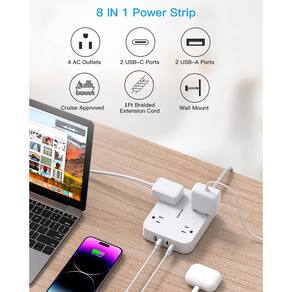- ?Estação de carregamento USB-C?Este filtro de linha está equipado com 2 portas USB-C, capaz de carregar dispositivos em até 5V/3A, e 2 portas USB-A que oferecem no máximo 5V/2,4 A. A combinação de portas USB-C e USB-A torna este filtro de linha compatível com uma ampla variedade de dispositivos, desde smartphones e tablets e muito mais, garantindo um carregamento rápido e eficiente para todos os seus dispositivos