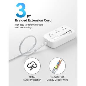 - Proteção contra sobrecarga e sobretensão: Este filtro de linha tem proteção contra sobretensão (1080J), proteção contra sobrecarga, proteção contra curto-circuito e proteção contra sobrecorrente. Com um disjuntor integrado, o interruptor liga/desliga desliga automaticamente enquanto seus dispositivos protegem seus eletrônicos caros, oferecendo a você um ambiente de carregamento seguro e confiável