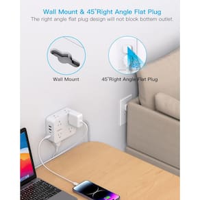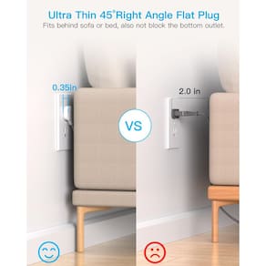 -?Cabo de extensão plano de 25 pés e plugue ultrafino?Este cabo de extensão de plugue plano de 25 pés foi projetado para espaços apertados, ideal para dormitórios universitários, escritórios e utensílios domésticos. O plugue de parede plano ultrafino de 0,35 polegadas permite que ele se encaixe perfeitamente na parede, facilmente escondido atrás de móveis, camas ou geladeiras, maximizando assim seu espaço. O design em ângulo reto de 45° do plugue plano de baixo perfil garante que a tomada adjacente permaneça acessível