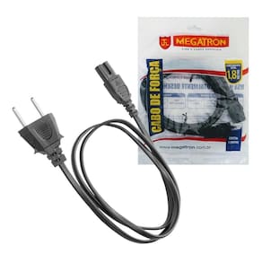 Cabo de Força para Fonte, Computador, 1,8M - Megatron Cabo de Força Megatron, produto de qualidade que garante segurança aos usuários, atendendo ao novo padrão brasileiro de plugues e tomadas NBR 14136 .