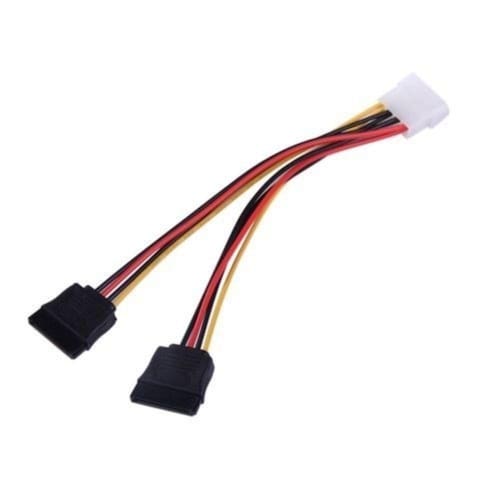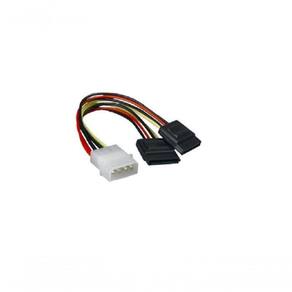 Cabo adaptador de energia 4 pinos (Macho)> 2x SATA (Fêmea), permite transformar uma conexão de energia de 4 pinos da fonte em duas conexões de energia SATA.