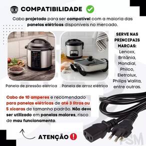 Se o cabo de energia da sua panela elétrica não está mais funcionando ou com mal contato, não se preocupe e não passe mais nervoso! Oferecemos para você este cabo de energia de excelente qualidade. Ele é feito de acordo com novo padrão brasileiro de tomadas, seguindo todas as especificações do Inmetro, garantindo total segurança.