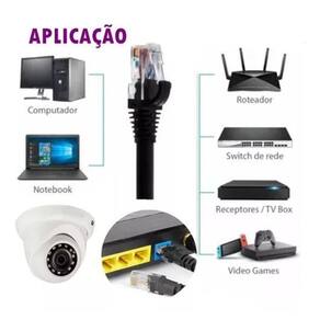 Cabo de internet 20 metros lan crimpado rj45 cat5e - top Descrição : ------------------ Os cabos categoria cat5 permitem uma transmissão de dados de alta qualidade e desempenho, tudo por conta da expessura de cada fio e o isolamento interno que protege os dados de interferências externas ou internas. Aumentando a sua capacidade de transmissão e tornando o uso ideal para rede de computadores, games, smarttv e outros dispositivos. Montado e testado, pronto para o uso Cabo de rede cca alumínio acobreado Cabo de rede trançado para utilização em grande escala. Utilizado para instalação de redes em edifícios comerciais, industriais, residenciais e outros. Possibilita a instalação de sistemas de vigilância áudio e vídeo utilizando padrão tcp ip. Prático e extremamente seguro, garante a integridade de suas instalações de rede. Isolação termoplástica Cabo de rede com 4 pares trançados 8 vias cat5e Utp unshielded twisted pair - cabo de par trançado sem blindagem Especificações do conector rj45: ----------------------------------------------------------------- - conector rj-45 8x8 cat5e suporte gigabit ethernet exbom cont-rj45p100 - conector rj45 cat5e é ideal para sistema de cabeamento estruturado, cabeamento horizontal ou secundário, para uso interno. - tipo de conector: rj-45 - tipo de cabo utilizado: u/utp - temperatura de armazenamento:- 40ºc a +70ºc - temperatura de operação -10ºc a +60ºc - cor: transparente - corpo em termoplástico de alto impacto ul 94 v-0 - vias de contato produzido em bronze fosforoso com camadas de 2,54m de níquel e 1,27m de ouro - atende fcc 68.5 emi - interferência eletromagnétic Porque comprar na delphus Nós trabalhamos a mais de 15 anos na area de importação e fabricação de cabos para area de segurança. Qualificações positivas E um ótimo atendimento é só olhar nossa reputação e comentários. Observação: Tire todas suas duvidas no campo de perguntas e respostas; Esperamos ter atendido suas expectativas e aguardamos sua compra. Itens na embalagem : ---------------------------------------- - 01 cabo de rede cat 5e preto com 20 metros e conectores montado do vendedor: --------------------------------------------- - 90 dias apos o fechamento do pedido Homologação Anatel: 008781601292 Marca: Não Informado Ean: 7896395824283