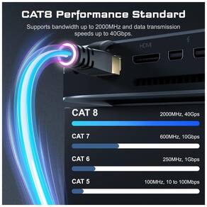 O cabo Ethernet Cat8 cego de 4 camadas é supereficiente na redução da interferência EMI , RFI e fornece alta velocidade para transmissão de dados de longa duração Com PVC fabricado, Cat8 é anticorrosão e à prova dágua e mais durável e substituível para trabalhos pesados pode ser enterrado diretamente adequado para uso interno e externo