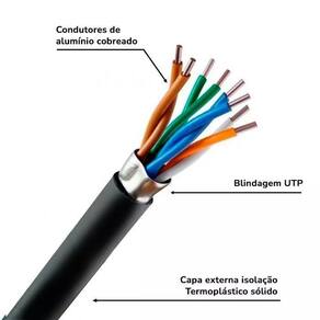 Características do Produto - Divisão: O cabo é dividido em 4 pares trançados, o que proporciona maior desempenho e minimiza interferências, graças à sua blindagem. - Aplicações: Pode ser utilizado em instalações de rede, CFTV circuito fechado de televisão e outras aplicações que demandam uma conexão estável e de alta velocidade.