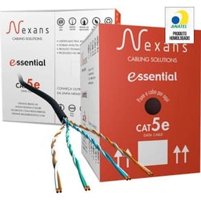 Cabo de Rede CAT.5E CMX 305m Preto Nexans - CX / 305 A linha de cabos Nexans Cat.5e oferece largura de banda de até 100 MHz para aplicações classe D de até 1 Gb. Os cabos Nexans Cat5e são projetados para aplicações horizontais em redes de cabeamento estruturado para conectar a tomada do usuário ao painel de administração ou para interligar os painéis de administração.Metragem:305m Tipo:u/utp Aplicação:redes de cabeamento estruturado Cor:preto Impedância:100 Ohms Revestimento:pvc - CMX Pesquisa:cabocabo de redenexanspretocat5eredecat.5e 4 pares trançados atendendo ao padrão de cores Azul/Azul Claro, Laranja/ Branco, Verde/Verde Claro, Marrom/Marrom Claro, quanto à isolação dos pares; 24 AWG; Composto por condutores de cobre nu, isolados em polietileno termoplástico de alta densidade; Número de Homologação Anatel: 00242-12-05519