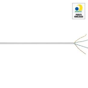 Cabo de par torcido u/UTP tipo 4 de fio composto por condutores de cobre sólidos nus, 23 AWG, isolado em polietileno termoplástico de alta densidade. Jaqueta retardante de chama externa nas opções de PVC CM e LSZH. 23AWG. Cabo sem filtro cruzado. Cumpra o padrão das cores Azul / Azul Claro, Laranja / Branco, Verde / Verde Claro, Marrom/ Marrom Claro, no que diz respeito ao isolamento dos pares.