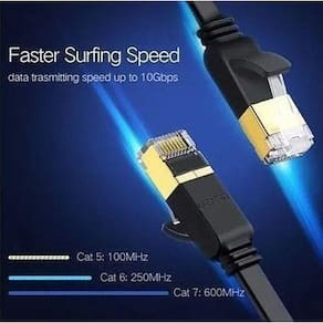 Marca: UGREEN - Qualidade Garantida Nome: Cat 8 U/FTP Ethernet Cable Flat Design Modelo: 10979 Conector: RJ45 8P8C Conectores Blindados e Banhados a Ouro 24K Conectores Protegidos contra Interferências EMI / RFI Condutor : 100% Cobre - Livre de Oxidação Taxa Transmissão: 40Gbps Largura da Band: 1Mhz-2000Mhz Material do revestimento : PVC + aluminio interno AWG: 30AWG Flat Cable Diametro: 2,1mm x 6,2mm Tamanho: 0,5 metro Cor: Preto