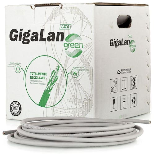 Cabo De Rede Furukawa Cat6 Cinza - 65 Metros Especificações - Capa: CM tem padrão de fornecimento de acordo com a Diretiva RoHS - Tipo de Cabo: 4 pares trançados compostos de condutores sólidos de cobre nu, 23 AWG, isolados em polietileno especial. - Categoria do Cabo: CAT 6 - Tipo de Cabo: 4 pares trançados - Bitola: 23 AWG - Ambiente de Instalação: Interno Não acompanha conectores.