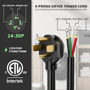 Cabo de secagem POWGRN 30 Amp 4 pinos 1,2 m preto calibre 10/4. Serve para tomadas de energia padrão de secador de 4 fios de 30 AMP. O cabo de secador de calibre 10 é classificado para suportar até 125/250V, 3750/7500W.Tipo