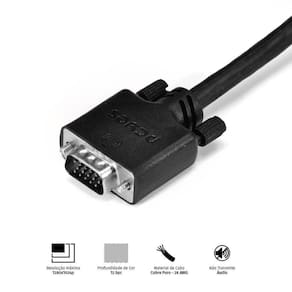 Dados Técnicos: Tamanho do cabo: 2M Material do cabo: cobre puro 28 AWG Resolução máxima: 1280x1024p Profundidade de cor: 12 bpc Não transmite áudio Analógico 1280x1024p