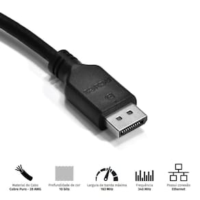 Cabo displayport macho para displayport macho 2 metros v1.2 - pdpm-2