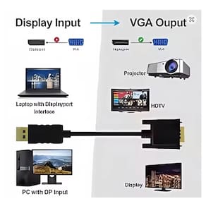 CaracterísticasConecta dispositivos com saída DisplayPort a monitores com entrada VGA Ideal para apresentações, estações de trabalho e uso pessoal Comprimento de 1,8 metros para maior flexibilidade Plug and play, sem necessidade de drivers Compatível com PCs, notebooks, monitores e projetores