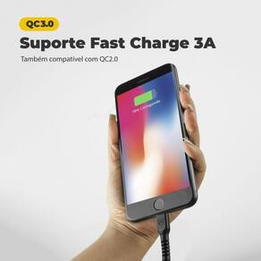 O cabo Dual Shock, da Gorila Shield, possui 1,2m de cabo revestido em PVC reforçado, proporcionando mais resistência e maior durabilidade ao acessório. Para quem possui aparelhos com a tecnologia Qualcomm 3.0, o Dual Shock é compatível. Para guardar o cabo de uma forma mais segura, prenda o acessório com a presilha Smart Arrange.