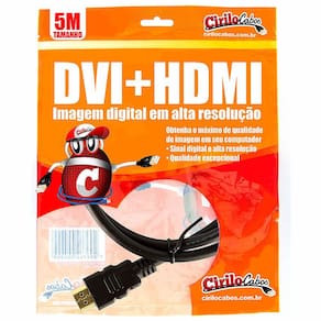 Excelente opção para quem deseja conectar o aparelho DVI em uma TV ou Monitor de LED e LCD com entrada HDMI, o Cabo DVI para HDMI de 5 metros da Cirilo Cabos oferece uma ótima conexão em Full HD de 1080p, através dos conectores banhados em ouro 24k. Foi desenvolvido especialmente para quem tem dificuldade para conectar os aparelhos DVI em uma tela extra.