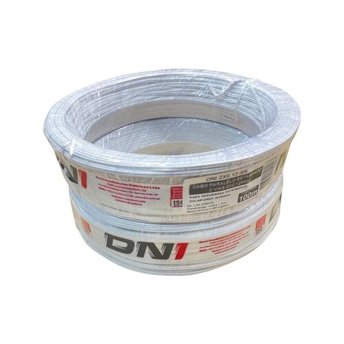 Cabo Para Segurança Patrimonial - DNI 2X0,12 Cor branca com polarização interna, com duas vias em cobre , um lado estanhado Embalagem: Rolo de 100m. Medidas: 18 x 4,5 x 18,5cm. Não poupe em produtos de qualidade duvidosa.