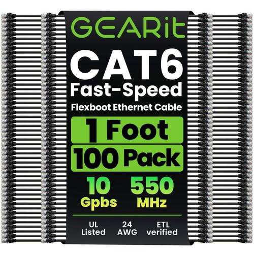 Prepare sua rede para o futuro para Ethernet de 10 Gigabit com cabos de conexão de rede GearIt Cat 6. Com os cabos GearIt Cat6, sua rede estará pronta para o futuro e continuará funcionando quando você chegar lá. Cabos verificados pelo padrão industrial ANSI/TIA-568-C.2, Cat 6 e ETL com conectores RJ45 (8P8C) sem enroscamentos de alta conformidade e botas de alívio de tensão moldadas. A classificação de largura de banda de até 550 Mhz garante compatibilidade com Ethernet 10BASE-T, 100BASE-TX (Fast Ethernet), 1000BASE-T (Gigabit Ethernet), 10GBASE-T (Ethernet de 10 Gigabit), Peer-to-Peer e quaisquer outros aplicativos que utilizem cabos de rede, incluindo telefonia, automação residencial e tecnologias de transferência de vídeo de longa distância, como HMDI sobre Ethernet. Use para conectar qualquer dispositivo em rede com conexão RJ45, incluindo PCs, laptops, servidores, impressoras, dispositivos de armazenamento NAS, VOIP, alimentação