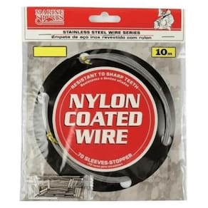 Cabo Fio De Aço Pesca Flexivel Marine Sports 40Lbs - 10M Cabos de aço feito para encastoar anzóis e snaps, incluso pacote de luvas com 70 unidades, confecção simples e eficaz. Resistência: 40 libras 18,14 kg Modelo: Aço Flexível Marine Sports Quantidade: 10 Metros Marca: Não Informado