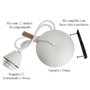 Fio de 1,5 metros ajustável ; Canopla plástica de 150mm; Bivolt 110v/220v; Soquete e27 rosca padrão ; Potência máx.: 60w; Bocal com rosca externa na ponta 32mm ;
