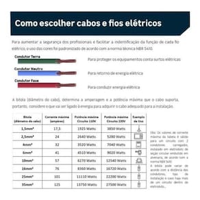 Cabo indicado para Motobomba para piscinas e condomínios e Quadro de entrada de energia elétrica Produto Cabo Flexível Seção Bitola 16 mm Potência Máxima em 110V 8360 W Potência Máxima em 220V 16720 W Corrente Elétrica Ampre 76 A Tipo do Condutor Fase Material do Condutor Cobre Marca SIL Produto Acompanha Embalagem Sim Metragem por Embalagem 100 m Cor Preto Formato da Venda Rolo Local de Instalação do Cabo Embutido Tensão Elétrica Máxima 750V Norma Técnica NBR 247-3 Regulamentado pelo Inmetro Sim Certificação do Inmetro TUV 20.0812 e TUV 20.0814 / OCP 0004 Marca: Não Informado