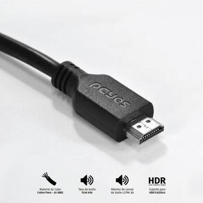 Os cabos da PCYES chegaram para determinar um novo patamar de qualidade para aqueles que buscam mais para seus equipamentos de nível profissional, unindo inovação a um custo acessível! São duas linhas completamente desenvolvidas para suprir as necessidades até do consumidor mais exigente, utilizando de design, alta tecnologia e materiais de qualidade para alcançar a excelência. Projetados com foco nos entusiastas, os cabos da PCYES possuem design exclusivo e 100% brasileiro, que combina robustez com minimalismo, além de levar em si a essência da marca, garantindo maior durabilidade e desempenho. Descrição: Este cabo é indicado para dispositivos que possuam conexão HDMI tais como: TVs, monitores, Aparelhos Blu-ray, video-games, placas de vídeo, notebooks etc