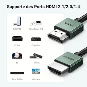 Ampla compatibilidade o cabo hdmi hdcp 2.3 se conecta a dispositivos equipados com conector hdmi 2.1/2.0/1.4 padrão, incluindo ps5/ps4/ps3, xbox series x/s/one, ns-switch, gpu, fire tv, dvd, shield tv /hdtv, tv-box, barras de som earc, etc.