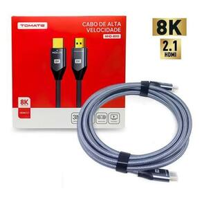 Novo modelo de cabo hdmi de alta velocidade com tecnologia 8k. Transmite vídeo no formato 8k, o qual possui oito vezes mais definição que o padrão. Nível de proteção superior, pois tem dupla malha de revestimento interno blindagem e revestimento externo de nylon.