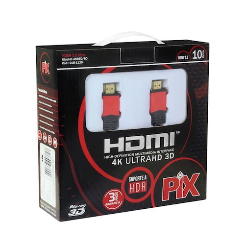 Os cabos PIX estão em total conformidade com o padrão HDMI 2.0, oferecem todos os recursos do padrão 1.4 e além disso, atingem 18Gbps de largura de banda e permitem a resolução de 4K em 3D com até 60 quadros por segundo 32 canais de som e proporção de imagem de cinema (21:9) para a melhor experiência em filmes e games. Garanta a melhor experiência com imagens nítidas e reais na ultra resolução de 4K e a gama de cores ampliada HDR. Os cabos HDMI PIX oferecem os recursos mais modernos, alta largura de banda, dual view e proporção de cinema 21:9, com qualidade garantia, para que você possa obter o melhor de seus equipamentos. 4K@50/60Hz 2160p: até 4X mais detalhes que 1080p - Filtro contra interferências. Dual view: 2 fluxos de vídeo simultâneos Compatível com proporção de cinema 21:9 Transmissão de 4 canais de áudio simultâneos Som imersivo com até 32 canais de áudio Som perfeito: frequência de Áudio até 1536Khz