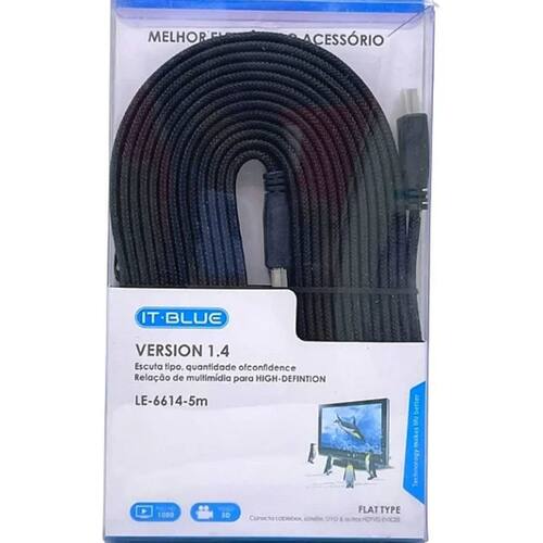 Características:- Versão: 1.4;- Cabo tipo flat;- Full HD 1080P- Comprimento do cabo: 5 metros.
