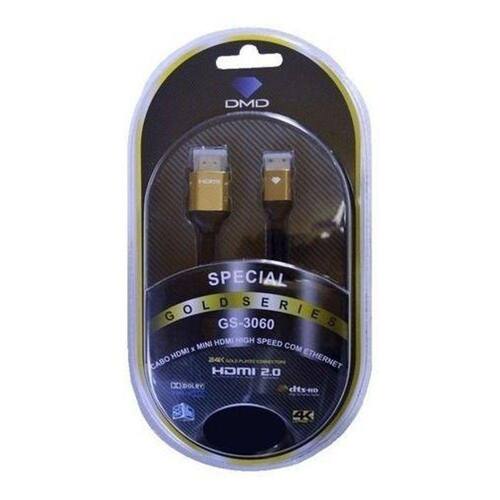 Cabo hdmi (mini hdmi) high speed c/ ethernet - 1,5m gs-3060/1,5mEspecificações TécnicasHDMI High Speed 2.0 transmissão em alta faixa dinâmica (High Dynamic Range - HDR) de vídeo largura de banda até 18Gbps 4K @ 50/60 (2160p)3D Ready - Suporte a Imagens 3D em telas wide (16:9) e super wide (21:9)Suporte a aplicações IP (Ethernet) com transferência acima de 100Mbps via HDMIARC ( Áudio Return Channel ) - Retorno de Áudio via HDMISuporte para resolução de vídeo 4K - 1920x1080P Ultra HD e áudio até 32 canaisTransmissão de áudio multi-dimensional à 1536 kHz.Condutores de cobre puro livre de oxigênio (OFC Copper) de 26AWG à 24AWGBlindagem dupla para máxima isolação a interferências externas Capa externa em PVC de alta qualidadeConectores 24K Gold PlatedInsuladores de polietileno (FPE) blindados por fita MylarGarantia 3 meses