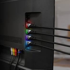- A luz embutida identifica dispositivos HDMI correspondentes: localize facilmente seus dispositivos HDMI com uma luz embutida que pisca uma cor específica. (Cabos azul, roxo e vermelho também estão disponíveis na Monster).