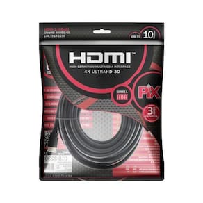Cabo Hdmi Pix Gold 2.0 4K Ultrahd 3D 19P 10 MetrosOs produtos Performance Sound são desenvolvidos para uso profissional e oferecem alto desempenho e mais fidelidade de som, com menores índices de interferência.Os cabos PIX estão em total conformidade com o padrão HDMI 2.0, oferecem todos os recursos do padrão 1.4 e além disso, atingem 18Gbps de largura deBanda e permitem a resolução de 4K em 3D com até 60 quadros por segundo 32 canais de som e proporção de imagem de cinema (21:9) para a melhor experiência em filmes e games.Especificações:SrgbYcbcr - 4:2:2/4:4:4Áudio 24bit, 192Khz, 8 canais LPCMBlu-ray e HD DVD com resolução máximaCEC - Controle de outros dispositivosDVD ÁudioSuper ÁudioDeep Color até 48bitXvyycAuto Lip-SyncDolby True HD (Áudio 7.1)DTS - HD Master ( Áudio 7.1)CEC Extendido3DCanal EthernetCanal de retorno de áudio4k30hz4k60hzSuporte à espaço de cor Rec.2020Suporte à YCbCr 4:2:032 canais de áudioÁudio a 1536 Khz4 canais de vídeo simultâneos2 canais de vídeo simultâneos (Dual View)Proporção 21:9