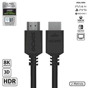Cabo Hdmi Ultra 2.1 28awg Puro Cobre 8k 60hz 2 Metros - Phm8k-2 CERTIFICADO PELA HDMI.ORG Vídeo 3D