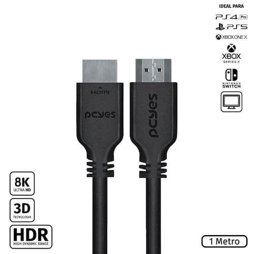 Cabo Hdmi Ultra 28awg Puro Cobre 8k 1 Metro - Phm21-1 Os cabos da PCYES chegaram para determinar um patamar de qualidade para aqueles que buscam mais para seus equipamentos de nível , unindo inovação a um custo acessível! São duas linhas completamente desenvolvidas para suprir as necessidades até do consumidor mais exigente, utilizando de design, alta tecnologia e materiais de qualidade para alcançar a excelência. Projetados com foco nos entusiastas, os cabos da PCYES possuem design exclusivo e 100% brasileiro, que combina robustez com minimalismo, além de levar em si a essência da marca, garantindo maior durabilidade e desempenho. Descrição: Este cabo é indicado para dispositivos que possuam conexão HDMI tais como: Play 4 Pro, XBOX One X, Monitores, Placas de vídeo, Gamer, TVs, DVD e Blu-ray Players, Receptores etc.
