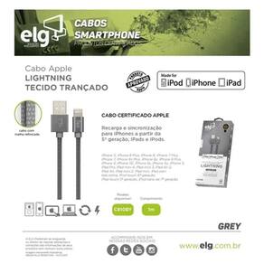 O cabo Lightning (8 pinos) em tecido trançado Nylon reforçado Sincronização/Recarga ELG, possui certificação Apple e acabamento em tecido trançado em nylon reforçado. apresenta acabamento refinado e resistente.
