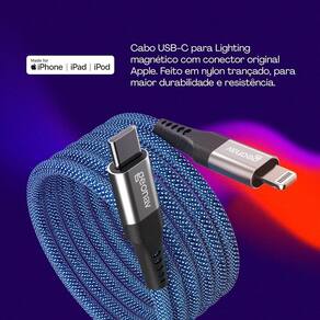 A Conexão Mágica para Carregar e Sincronizar seu iPhone: O Cabo Magnético da Geonav revoluciona a forma de carregar seu iPhone. Deixe o conector Lightning plugado no aparelho e conecte o cabo com a força do ímã, de forma rápida, fácil e segura. Conexão Magnética Prática: Evita o desgaste da porta do seu iPhone e permite conectar o cabo com apenas uma mão. Ideal para usar no carro. Carregamento Rápido (Power Delivery): Sendo USB-C para Lightning, é compatível com o carregamento rápido de 20W para iPhones mais recentes. Nylon Trançado e Resistente: O revestimento em nylon trançado garante uma durabilidade superior. Comprimento de 1,5 metros. Palavras-chave: Cabo Magnético, USB-C para Lightning, Geonav, Carregamento Rápido, iPhone, Power Delivery, Nylon.