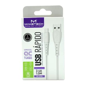 Cabo Micro USB Maketech CA 127A Branco 2.4A 1 Metro