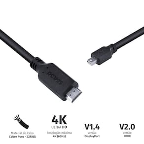 Este cabo é indicado para transmissão entre dispositivos Mini Displayport e HDMI tais como: TVs, monitores, Aparelhos Blu-ray, video-games, placas de vídeo, notebooks etc