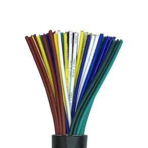 Cabo multisom, com condutores em cobre ofhc estanhado na seção de 24 awg pareado, blindado em fita de alumínio 100%, espaguetado e numerado par a par e reunidos com passo adequado, separados em fita tnt e coberto com termoplastico pvc.